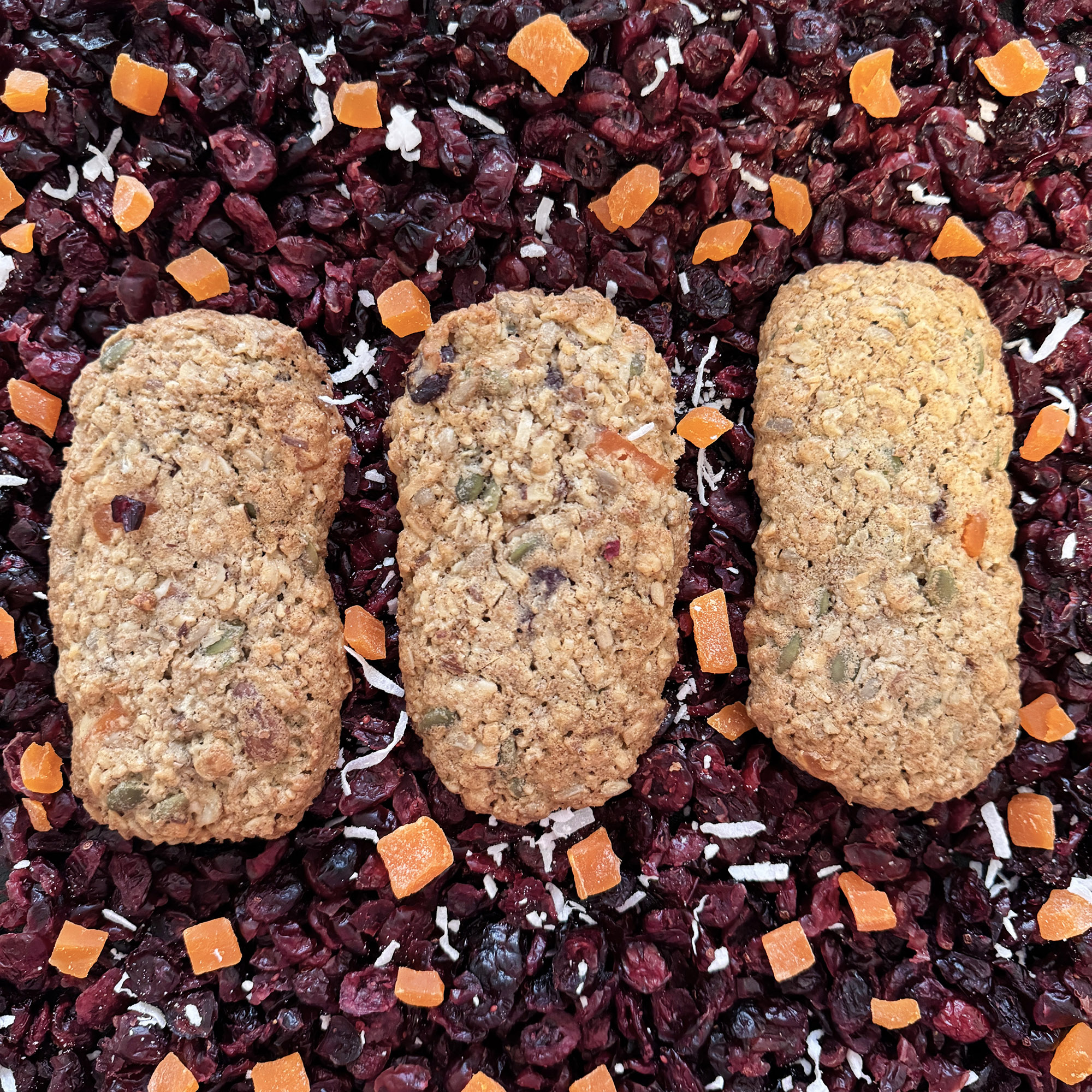 A soft-baked take on granola, our Fruit Bar is packed with good things. Oats, flour, butter, and brown sugar make a tender, cookie-like base. Then, coconut, cranberries, mango, almonds, pumpkin seeds, and sunflower seeds add plenty of texture and flavor.