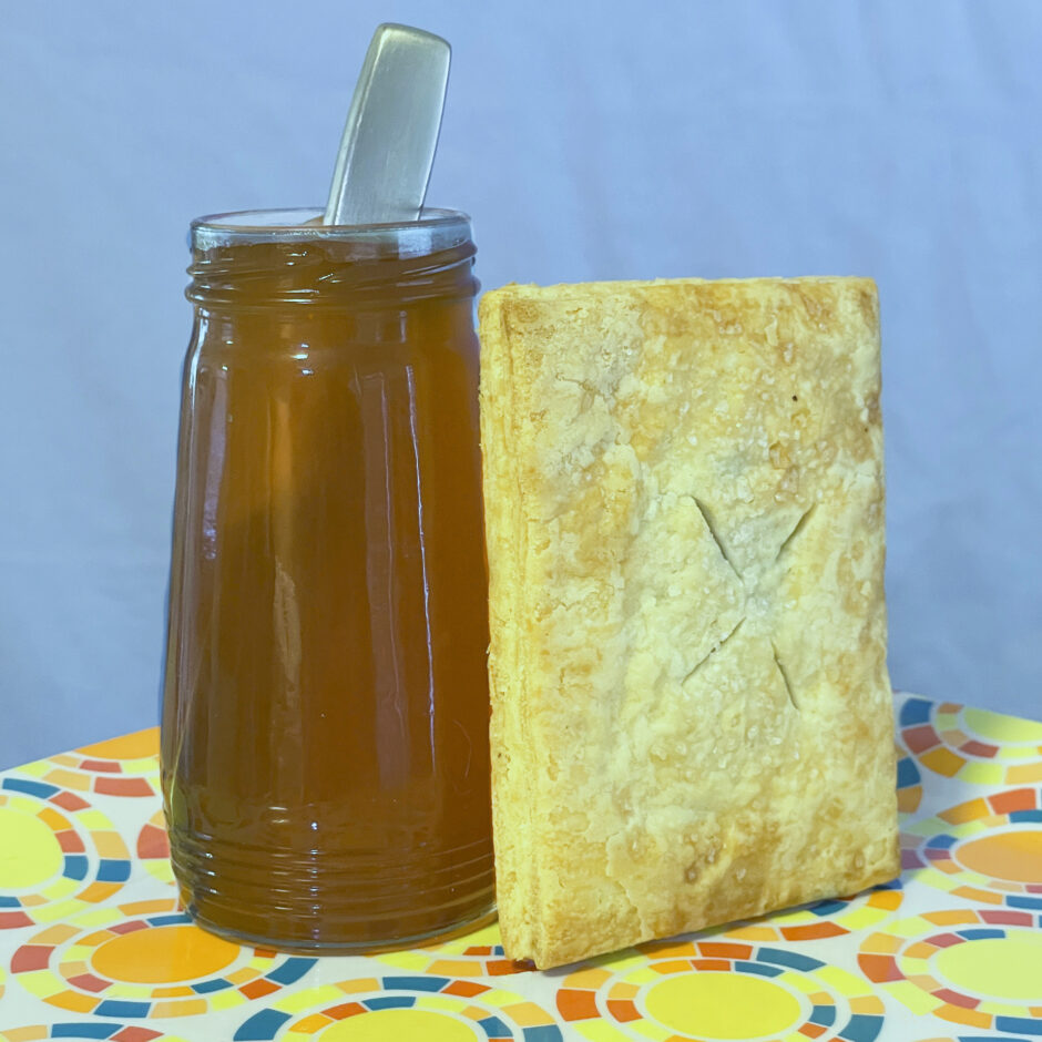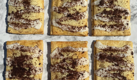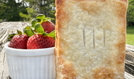 Our version of a delicious toaster pastry, a tart that pops with flavor … if you know what we’re saying! We fill our flaky pie crust with all sorts of goodness. This tart’s packed with our guava filling and topped with coarse sugar. We also bake tarts in cookies and cream, apple, strawberry, raspberry, and cinnamon roll.