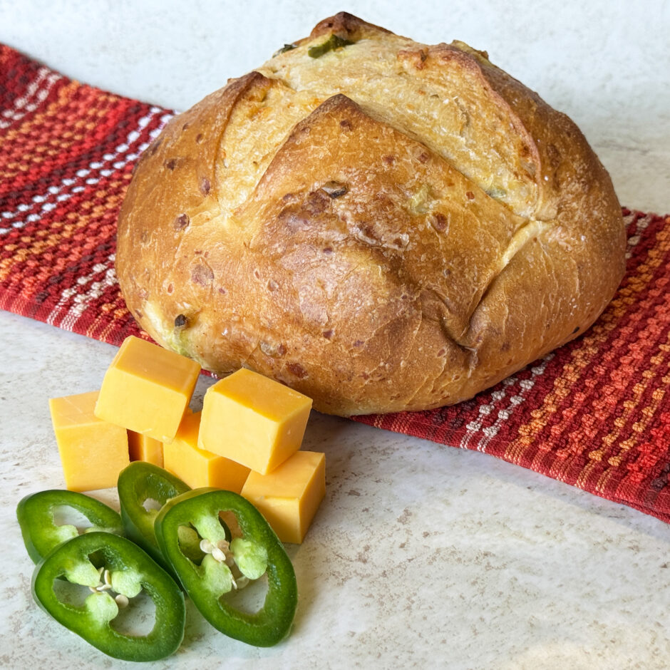 Turn up the heat and the flavor with our Jalapeño Cheddar Bread Round. Enough to wake up your taste buds without setting off the fire alarm, it’s perfect for sandwiches or just tearing apart and dipping. Soft on the inside, crusty on the outside, and dangerously snackable all around.