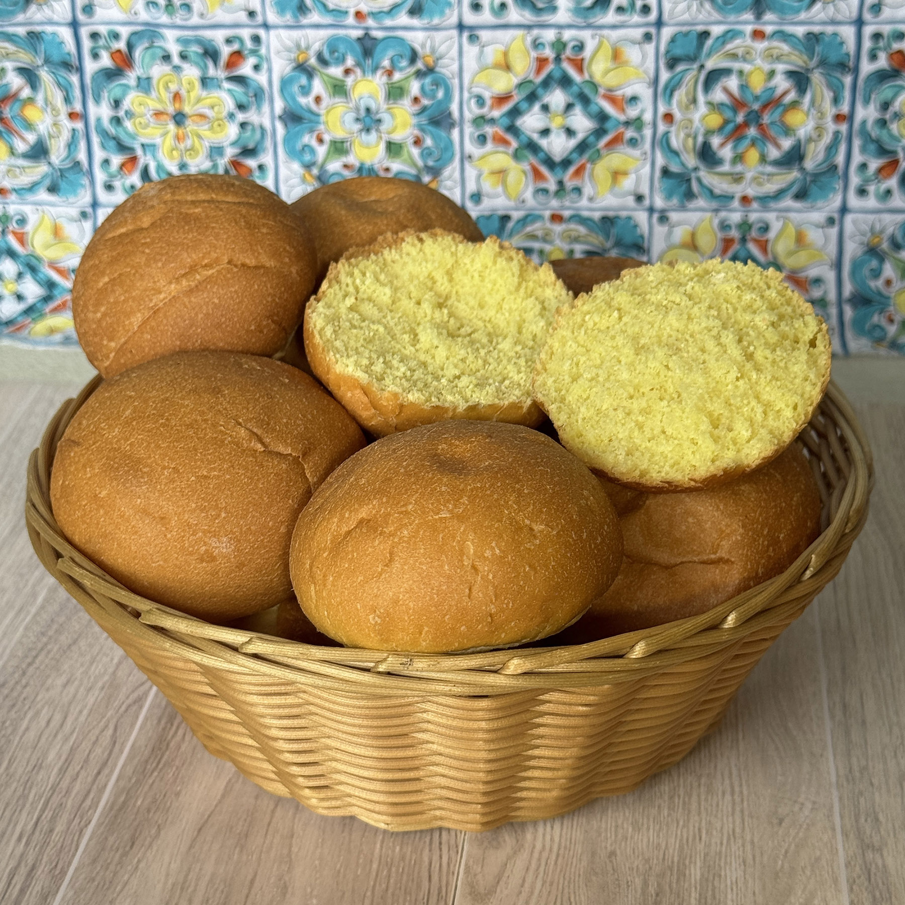 Our Medianoche Dinner Roll is a classic Cuban-style bread, traditionally enjoyed after late nights out in Havana. (That’s why its named is the Spanish word for “midnight.”) Slightly sweeter and softer than our Cuban bread, our medianoche baked goods are enriched with evaporated milk and butter, giving it a tender, pillowy texture and a subtle richness. A touch of turmeric – no artificial color – adds the signature golden color. Minimum order is 50. We also bake medianoche loaves, hoagies, and pan rolls.